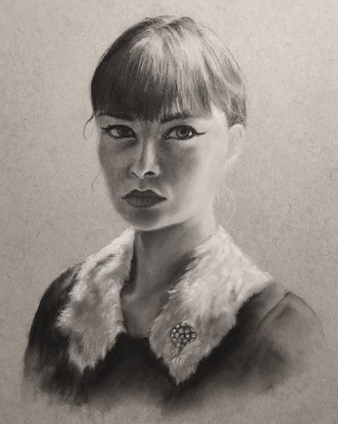 Portrait sketch of Lacy Soto - Drawing on toned paper