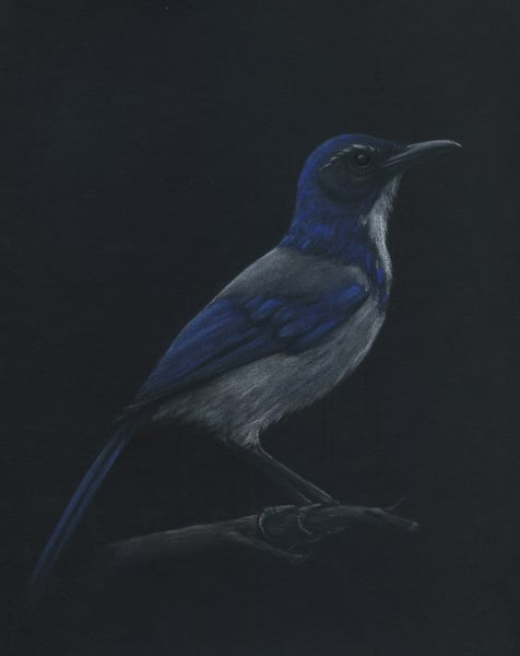 Hummingbird on Hibiscus Branch - Framed Original Painting
